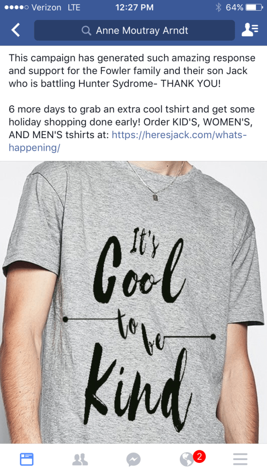 It’s Cool to be Kind This entry was posted on November 3, 2016, in Uncategorized. Bookmark the permalink. Leave a comment 5 more days to grab your tshirts. Great holiday gifts for a fabulous cause! Check out “what’s happening” on this websites main page, look under menu. Be a part of being kind and cool! xoxo J Share this: Click to share on X (Opens in new window) X Click to share on Facebook (Opens in new window) Facebook Like Loading...